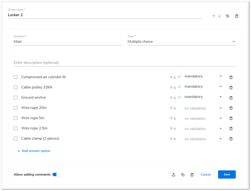 Each organization can create its own templates. The grouping of questions offers the possibility to bring more clarity in to complex checklists.