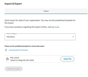 As of release 1.12, it is also possible to import or export members and objects in Command Administration. This simplifies the initial setup of the organization and the administration. All