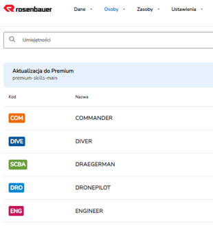 Skills include functions, badges or qualifications that can be assigned to members. This allows managers in the field to see, for example, how many breathing apparatus wearers are